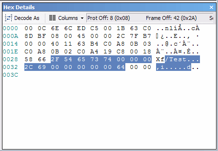 OSCパケットは"UDP"の"+"をクリックした後の"UDPPayloadData"をクリックすると”Hex Details"に色付きで表示されます。